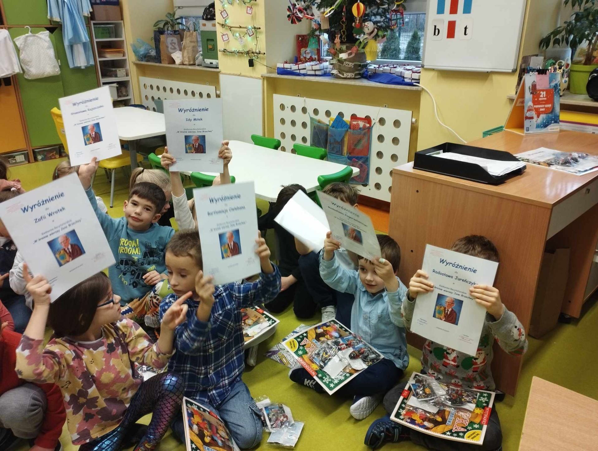 7 grudnia odbył się Konkurs Recytatorski dla oddziałów przedszkolnych: „W krainie wierszy Jana Brzechwy”. Celem konkursu była popularyzacja poezji dziecięcej, rozwijanie zdolności recytatorskich oraz zainteresowanie dzieci poezją. Organizatorami konkursu były Małgorzata Siekierska i Iwona Wójcik. W konkursie udział wzięło 16 uczniów z oddziałów przedszkolnych. Młodzi wielbiciele poezji wygłosili znane i popularne wiersze Jana Brzechwy: „Leń”, „Kaczka Dziwaczka”, „Na straganie”, „Dzik”, „Żuk”, „Staś Pytalski”, „Ślimak”, „Na wyspach Bergamutach”, „Psie smutki”, „Pomidor”.